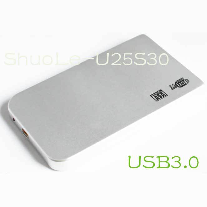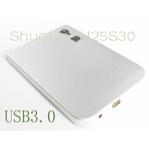 产品名称: Shuole移动硬盘盒 产品型号: ShuoLe-U25S30 支持容量:可是支持到1500G的sata接口笔记本硬盘(标准厚度9.5MM ) 外部接口: USB3.0 传输速度: 5Gbps 使用电源: usb线直接取电 主体材质:铝合金 系统支持: Windows 98/se/me/2000/xp/7/vista...... Mac OS8.6及其更高版本 产品颜色:黑红兰银绿铁灰黄等 适用硬盘:10毫米以下2.5寸sata接口硬盘 外形尺寸: 12cmX7cmx1cm 全套重量: 0.2kg ?