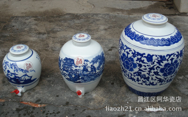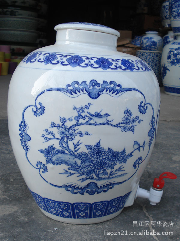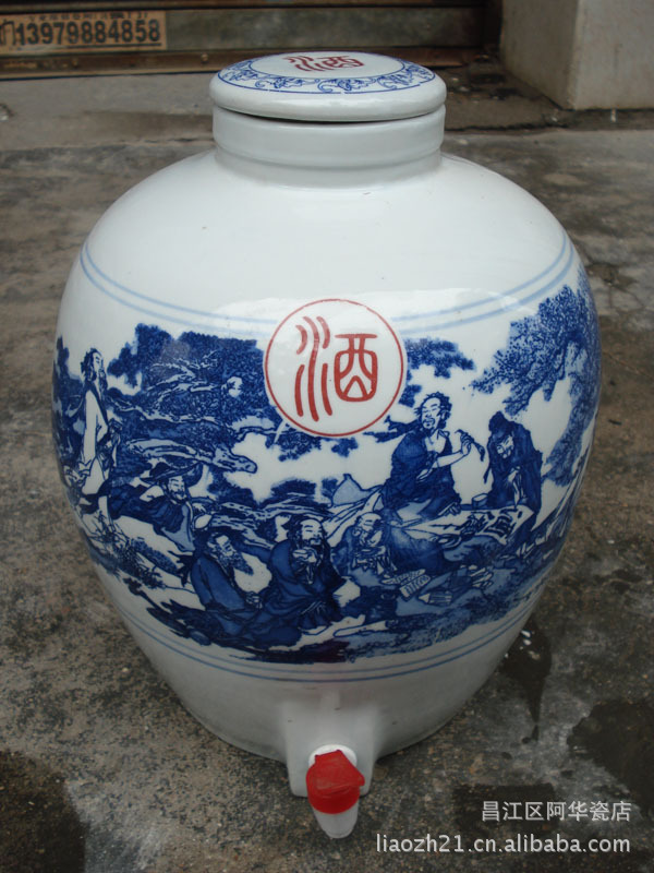 景德镇陶瓷酒坛/陶瓷酒具/带龙头酒缸/青花瓷10斤-50斤装
