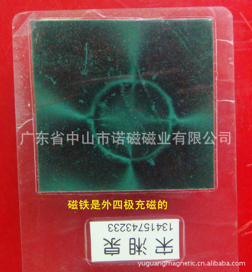 磁铁是一种功能性的产品,人工制造的磁铁,刚生产出来很多是没有磁性的,是通过后续充磁后才拥有磁性,但是如何知道它是否有磁和充对磁了呢?单凭肉眼,无法判断。因为磁路和磁力线是一种看不见,摸不着的东西,人们为了验证它是否充对磁,或者磁力线如何走向,必须使用磁极显映片(磁铁的照妖镜)。只要我们通过磁极观察片去看,我们就能清楚地看到磁极的分布以及每极间的间距,可以分辨出是几极充磁还是厚度充磁?它是永磁材料行业厂家和电机、电子产品装配企业不可缺少的检测工具,还可以跟据磁路和磁力来设计和开发一些新电机和电子产品!采用特殊的进口优质材料加工制成,精心制作,携带方便,使用长久。大小可以根据用户需要制作,同时,我们可以为您在观察片旁边制作彩色广告,具有收藏和广告宣传及实用的特点,是自己使用和赠送用户的最佳选择。