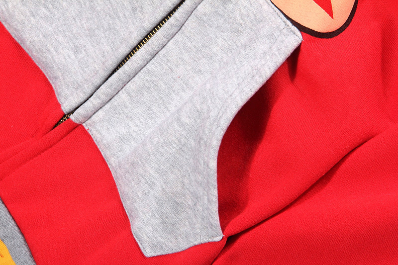 款式说明:本款卫衣的特色就是正反面都能穿哦,一面是卡通头像,一面是带拉锁的,堆堆领带帽更显时尚。