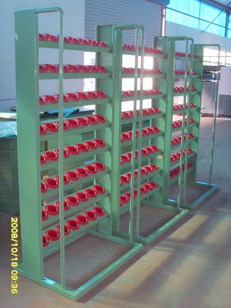 5、刀具车是存放、搬运刀具的装备,这里以‘现代货架厂’生产的HY-HSK系列型号为例,此类刀具车可存BT30、BT40、BT50、HSK63、HSK100等多种型号的刀具。