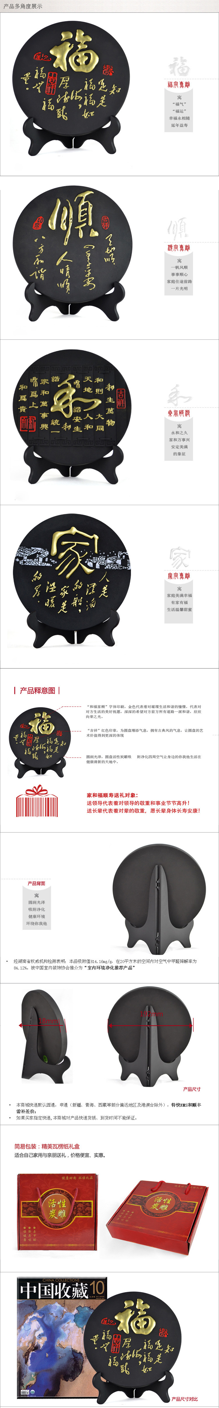 健之宝炭雕拥有超大的比表面积,发达的孔隙结构,具有全天候、全自动、全面彻底、长效吸附室内、车内、船内、飞机内有毒有害气体(如甲醛、苯、甲苯、二甲苯、氨、二氧化硫、一氧化碳)的功能。与市面上其它的净化空气产品相比,它具有无能耗、无二次污染、安全长效等优点。同时它还富有深刻文化底蕴和绚丽外表,是一种既能清洁空气又能美化空间的功能性环保工艺品;部分产品经名家名师雕刻绘画,极具收藏价值。