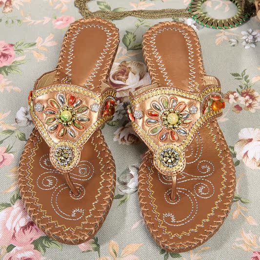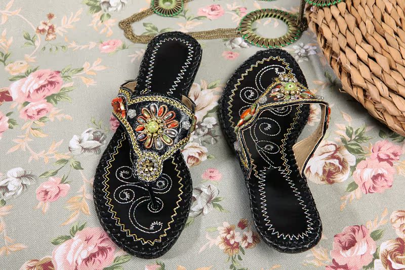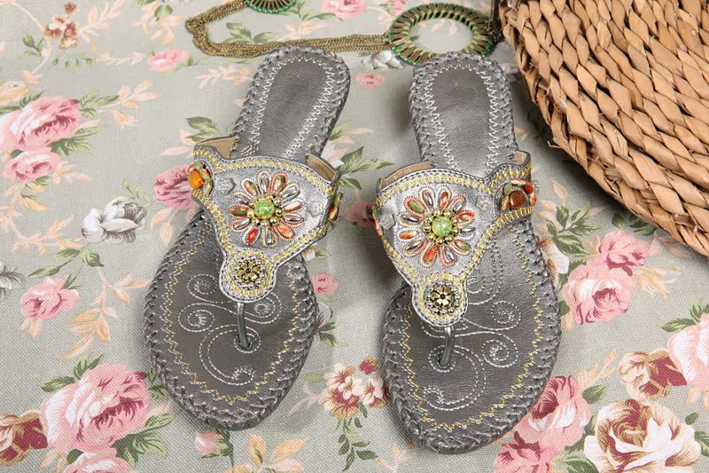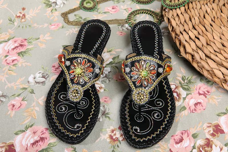 (订货)民族风风民族风手工串珠绣花拖凉鞋绣花工艺鞋