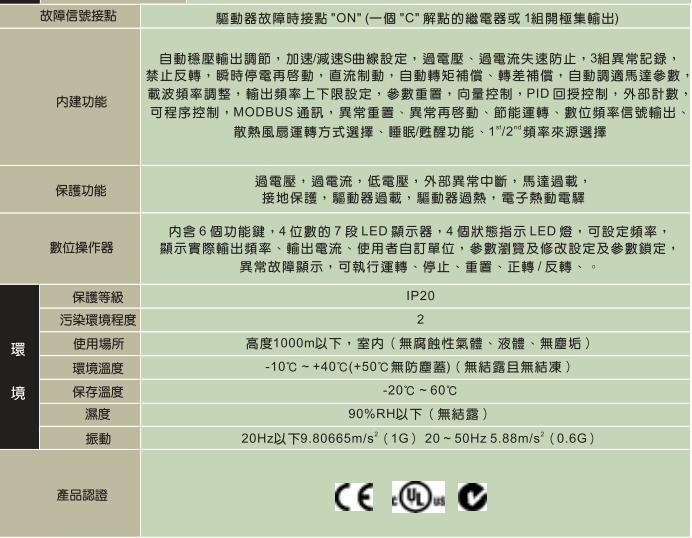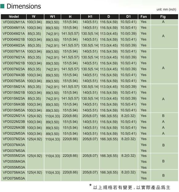 VFD022S21A VFD055B43B VFD110A43A VFD220V43A