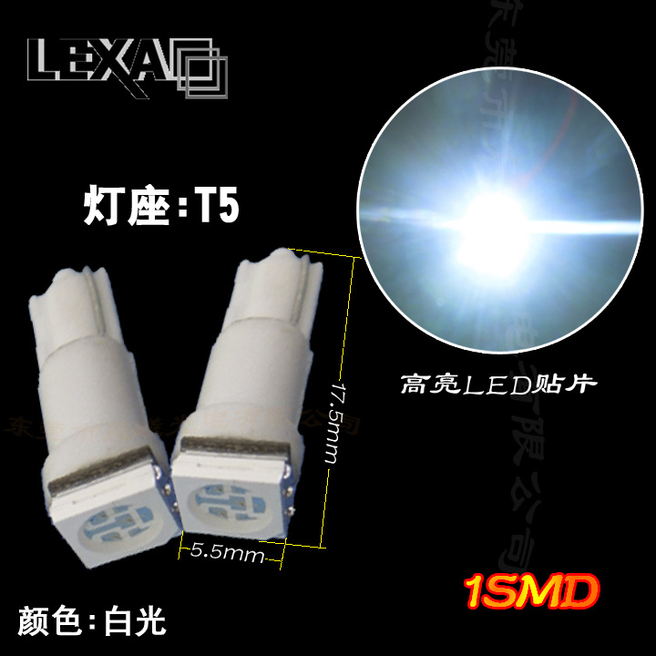 高亮汽车车灯改装led灯LED汽车仪表灯 T5 1颗三芯片5050圆板