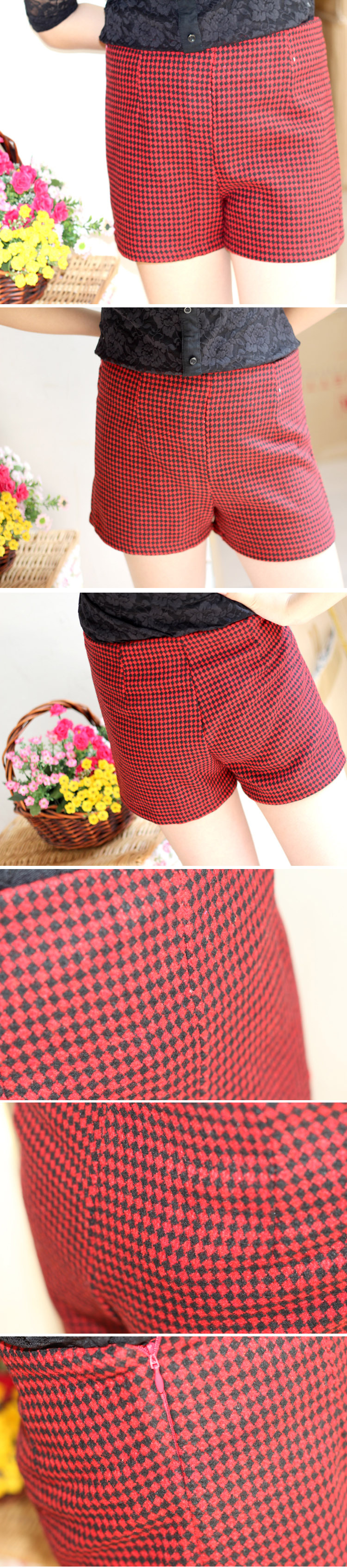 2012秋冬新款女装 韩版简约百搭高腰复古格子短裤 女