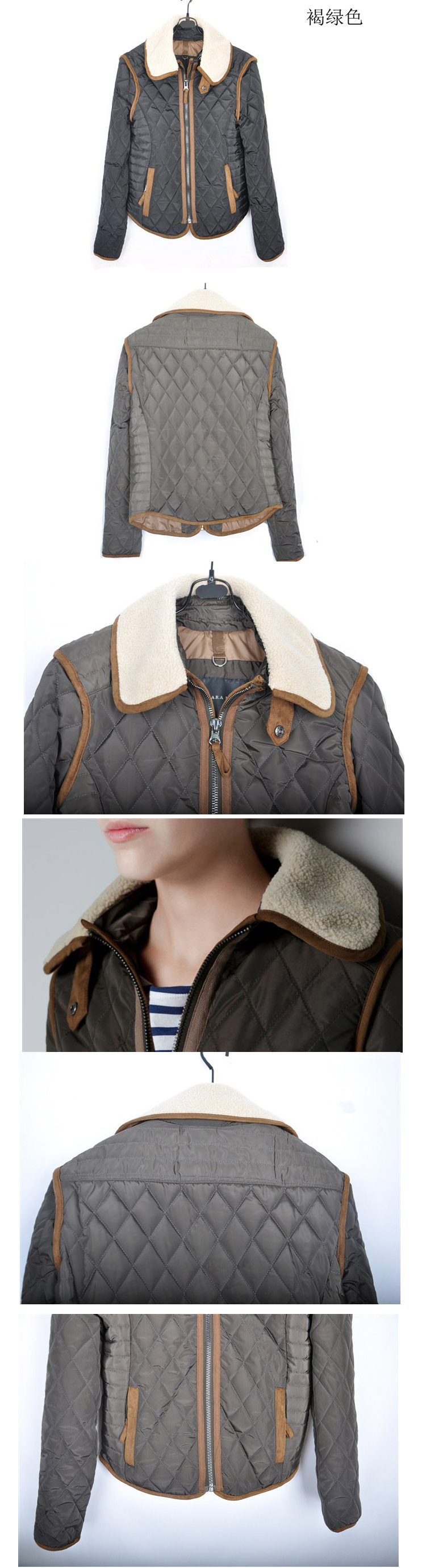 2012冬季新款女装 欧美大翻领毛领加厚内胆短款棉质外套 棉袄棉衣