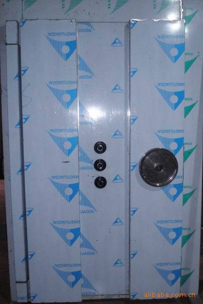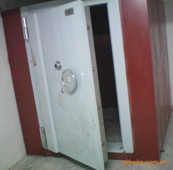 2、利用起重工具把金库门置于门洞内,调整,使其垂直度或水平度不大于2mm,并用铁板垫平。