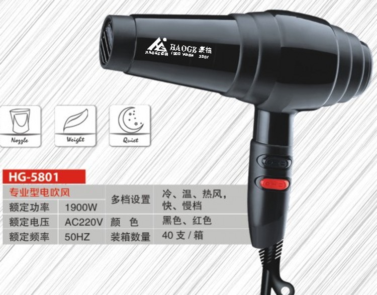 豪格HG-5801吹风机,1900W专业电吹风。