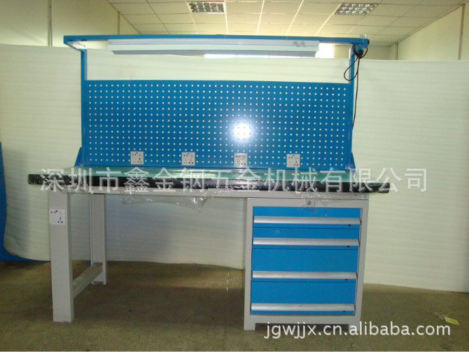 工作台:我司生产各种桌面板工作台工作桌,特别适合:模具厂,组装厂,实验室,测试单位,塑胶厂.机床.车床.数控.钳工作业等及其他类型工厂使用。客户可根据自己的要求自行配置或者定做其他规格,满足工厂.技校.教学的特殊作业要求。
