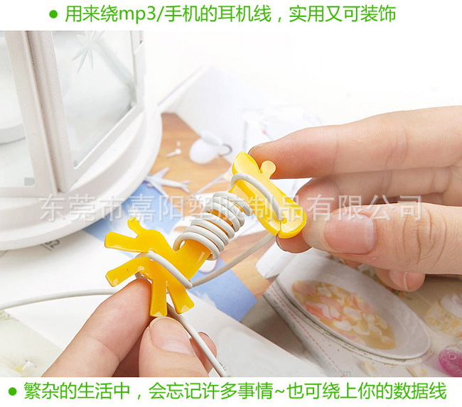 2、能够把过长的耳机线,手机线,鼠标线缠成圈,非常美观,实用性强。 3、轻巧且便于携带。 4、使用方法非常简单。 产品用途:广泛应用于手机线,耳机线,鼠标线的缠绕,能用在电脑、充电器、手机线、MP3、ipad等各种电子产品的耳机线、电脑线材。
