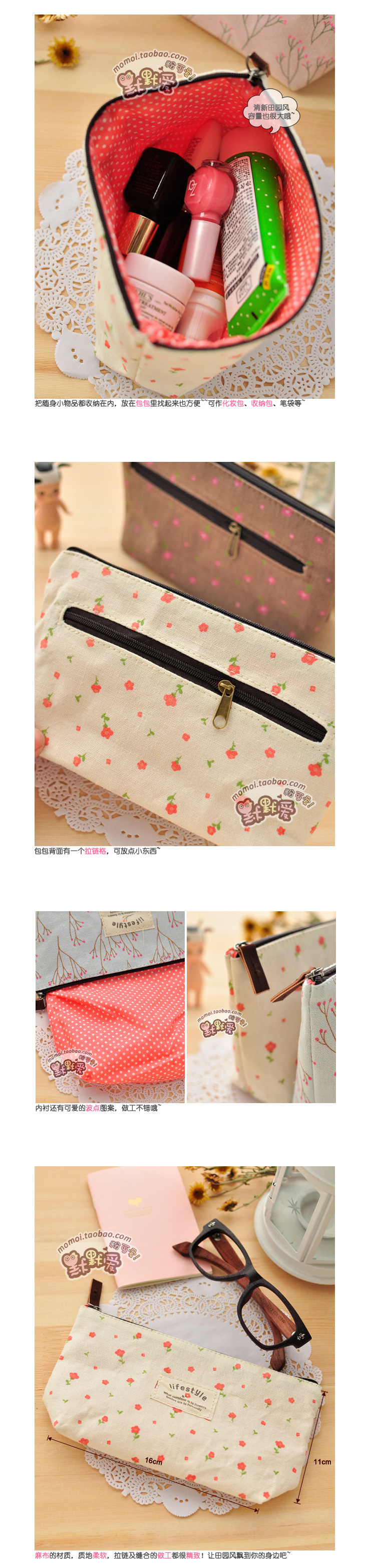 H147厂家贴牌棉布化妆包 礼品小碎花收纳化妆包