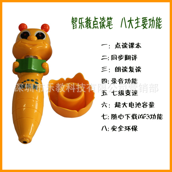 [智乐教点读笔]在配套图书点不同位置可发出不同的声音,点中文说中文,点英语说英语,点故事讲故事,点儿歌唱儿歌,笔头采用优质第二代加密型OID技术方案,感应灵敏、准确,哪里不懂点哪里。