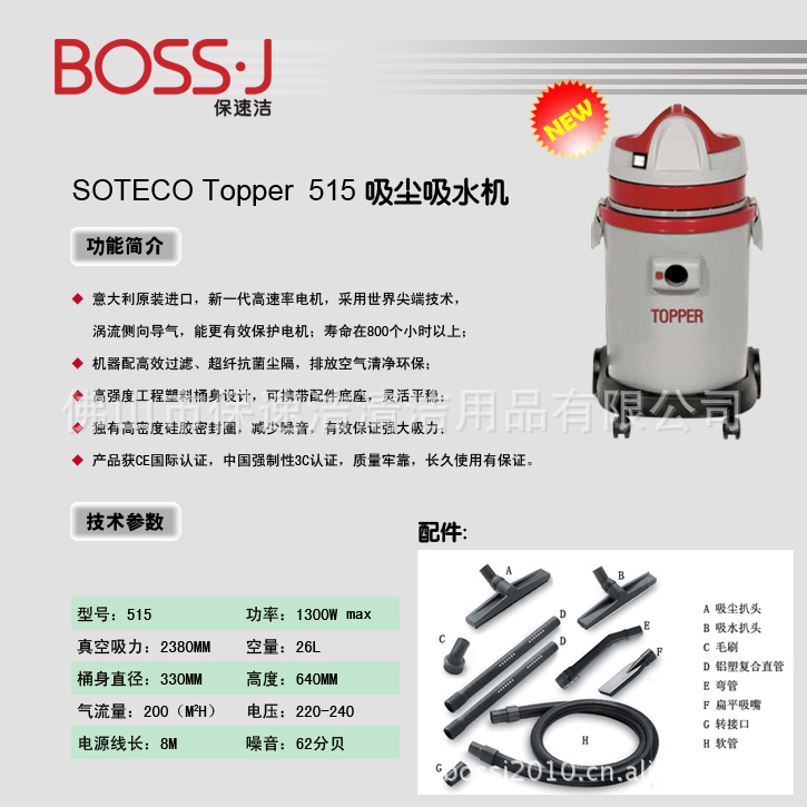 1) Topper series is the newest model from SOTECO,we are the Exclusive Agent for this series in China, 2) Topper Vacuum is made of high quality material, strong and durable, 3) Sound insulation effect is first-class, 4) Dust filters is antibacterial, 5) Topper motor are provided with new generation high speed single stage motors , which can work for 800 hours.