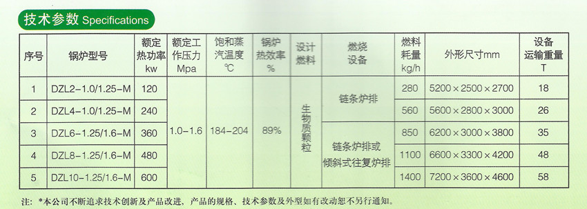 本公司研制的生物质颗粒锅炉是在引进国外先进燃烧技术的基础上结合我国实际情况进行设计、开发、具有结构合理,受热面积大,热效率高,燃烧充分,无污染,低排放等特点。采用机械自动加料装置,实现机械化燃料供给燃烧,再配装喷淋式除尘器。各类排放指标均低于国家(GB13271-2001)《锅炉大气污染物排放标准》规定,是替代电、燃油、燃气、燃煤蒸汽锅炉的最佳产品。生物质锅炉运行成本低,比燃油、燃气、电加热锅炉可节省10%-50%运行成本,是一种高效节能环保的热能设备。