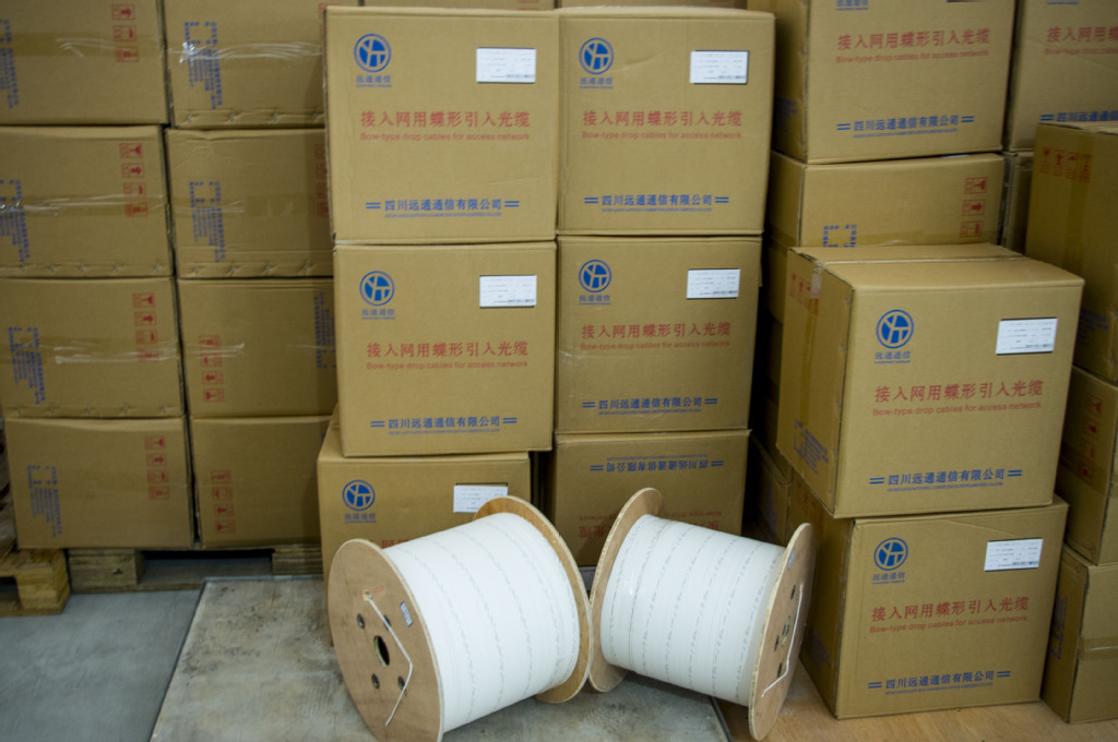 特点:室内、室外都可以使用,光纤芯数有1芯、2芯、4芯。入户时,架空跨度较大可达50m以上架空敷设。