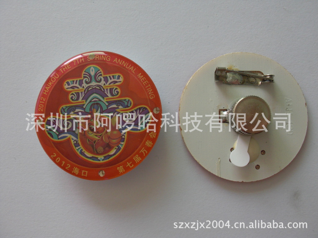 注:我司生产发光胸章多年,有丰富的胸章模板库存,可快速为你提供大货产品,且不用开模,可为您省下模具费。