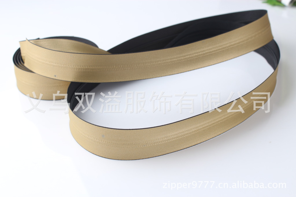 防水拉链描述1、材料:1)尼龙布带:采用特殊工艺缝合而成,保持布带中缝细密,有回弹性,防止水从缝隙中渗入2>PVC/PU膜:采用添加环保增塑剂柠檬酸酿PVC/PU膜(哑光,亮光)3)粘结剂:采用高性能纺织品专用热熔胶2、工艺:引进国内先进的热风贴合技术的全套设备3、性能1)贴合牢度:TPU膜与布带贴合牢度达到(剥离强庿/span>65/25mm)标准:GB/T2790?9952)水洗,干洗_/span>60度水洗30次。(只加入洗衣粉不添加任何化学药品)3)平拉次数:大于30004)低温;高温:零-10度,高温180度4、品种:包括(哑光,亮光),3号,5号,8号,10号)等防水拉链规格5、用途:应用于服装,箱包,帐篷,雨衣,防水鞋等领域,此款防水拉链适用于服装的无缝贴合技术上用途:防护服类:宇航服、潜水服、用于潜水艇的逃生服、减压服、危险防止服、污染防止服、防辐射服、用于水上滑艇的简易服等;