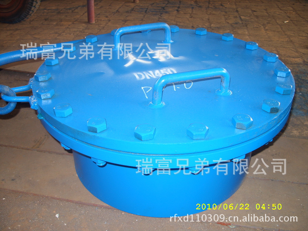 人孔是安装在储罐顶上的安全应急通气装置,通常与防火器、机械呼吸阀配套使用,既能避免因意外原因造成罐内急剧超压或真空时,损坏储罐而发生事故,又有起到安全阻火作用,是保护储罐的安全装置,特别适用于贮存物料以氮气封顶的拱顶常压罐。具有定压排放、定压吸入、开闭灵活、安全阻火、结构紧凑、密封性能好、安全可靠等优点。
