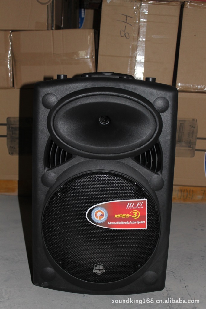 适用范围 体操、跳舞、教学、宣传、产品促销、户外活动、旅行集会,唱歌,炼琴.吉他等使用 公司集会、户外演出活动、产品推广 学校室内外大型教学讲课,文体活动示范表演扩音. 学校团体户外活动,老年人健身娱乐扩音. 产品推广宣传.现场会.临时集会.交通现场指挥扩音等.各种现场会的流动扩音、放音 性能简介 1.内置双频无线麦克风,采用石英震荡线路,频率稳定,抗干扰强. 2.内置优质大容量蓄电池,室外可以使用3小时左右。带外接蓄电池接口。 3.内建智慧型电源供应系统:自动检测电池电量、自动充电. 4.内置三菱数码芯片,带混音控制,高低音控制 5. 5路输入 ,2路无线麦克风输入 2路有线麦克风输入 1路电吉他输入(不可以调混响) 7.两分频设计,号角磁头高音、12寸低音单元,音色极佳 8.优质塑料箱体轻便实用,加强型提手,旋钮、电路板、蓄电池等特殊加固。 9.标配高级拉杆和地轮,方便运输、流动演出。 技术参数 频率响应:70Hz-18KHz 额定功率:200W 失 真 度:115dB(1W/1M) 音箱阻抗:8Ω 输入信号:有线 100mV (300Ω) 线性输入1.0V(1KΩ) 使用电源:交流AC:220V 直流DC:12V 12Ah 1只 消耗电流:3.5A(MAX) 箱体材料:木质+铁质 箱体尺寸:41*38*61厘米(宽、深、高) 重 量:15Kg 外观颜色:黑色 标准配置 主 机:1台 无线话筒:1支 外接电瓶线