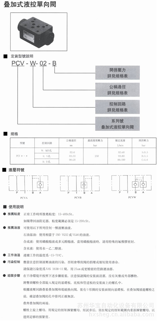 叠加式液控单向阀PCV-02 PCVA-03 PCV-06