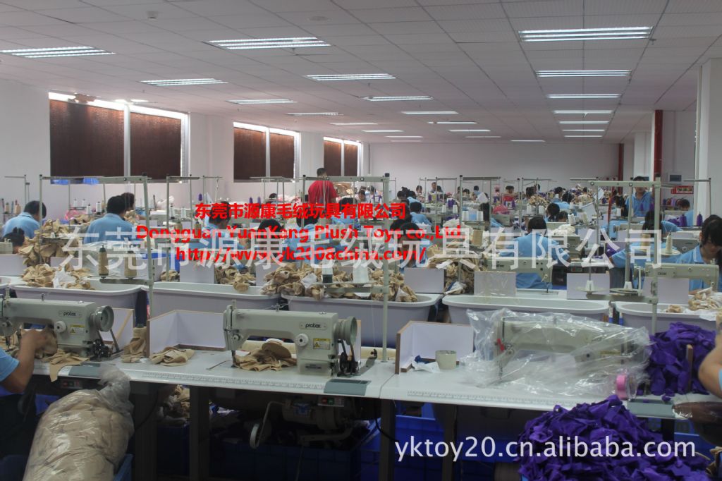 东莞市源康毛绒玩具有限公司创建于2002年,从2002年数十人的小规模厂家到2011年年底已经扩大到工厂占地面积13000平方以上的标准厂房。已经具备每月生产80万以上的生产能力的工厂,同时我们还积极推行现代化的企业管理、承担社会责任,按照当地劳动部门的要求,与所有员工签订劳动合同,购买社会保险等福利。