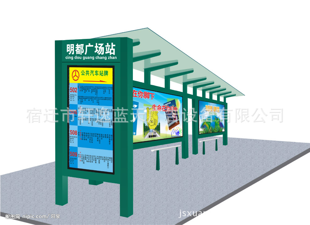 近些年来,经过不断的发展完善,候车亭已由原来单纯由不锈钢材料制作,发展为由镀锌钢管、镀锌板等制作或工厂制模批量生产等。