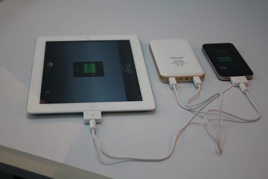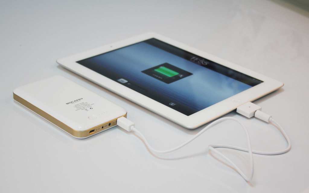 将包装内附的连接线与需充电产品相对应的转接头连接上socany power spring 8,当socany power spring 8上的转接头接入需充电产品(注意:选择需充电产品相对应的输出电流,例如所需充电产品输入是1A以下的选择1A的输出口,1A以上的选择2A的输出口,两个口同时输出时电流各1A),短按开机按键(短按开机按键后指示灯会亮十秒后自动熄灭)时即可开始给所需充电的产品充电,需充电产品充满后,socany power spring8将自动关闭输出电源(此功能起到节能省电并延长电芯使用寿命)