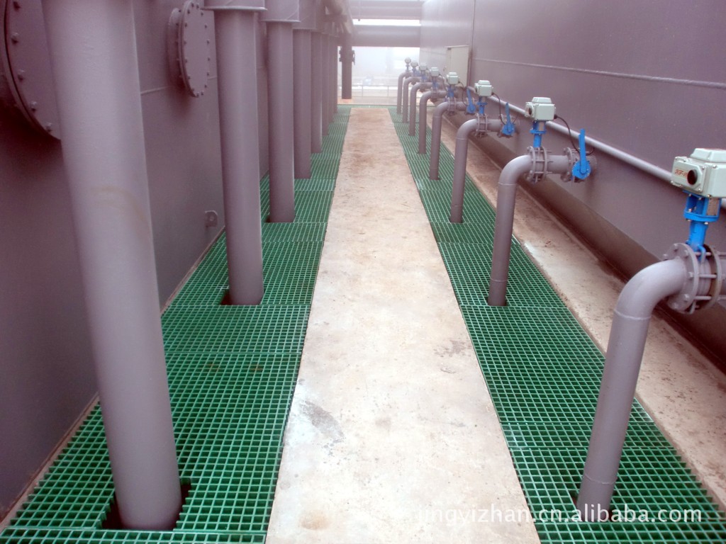 玻璃钢格栅操作平台:化工厂都有大量的操作平台,这些平台的铺面材料采用玻璃钢格栅比较合理,玻璃钢格栅耐腐蚀,毋需油漆,无需维护,使用寿命长,可使用二十年,重量轻,与钢材相比,减轻重量3/4,所以安装时无需提升吊装设备,而且支撑构件也可以相应减少,对于直接支撑在设备上的操作平台就更加适合。玻璃钢格栅的开孔切割非常方便,使用弧形切割锯可以很方便地开孔来满足安装设备的要求,而且不会因开孔而造成玻璃钢格栅散落,对于移动式的操作平台,使用玻璃钢格栅就更加适合,此外玻璃钢格栅有一些弹性,长期在上面工作的人可以减轻疲劳,提高工作效率,因而是操作平台的理想材料。