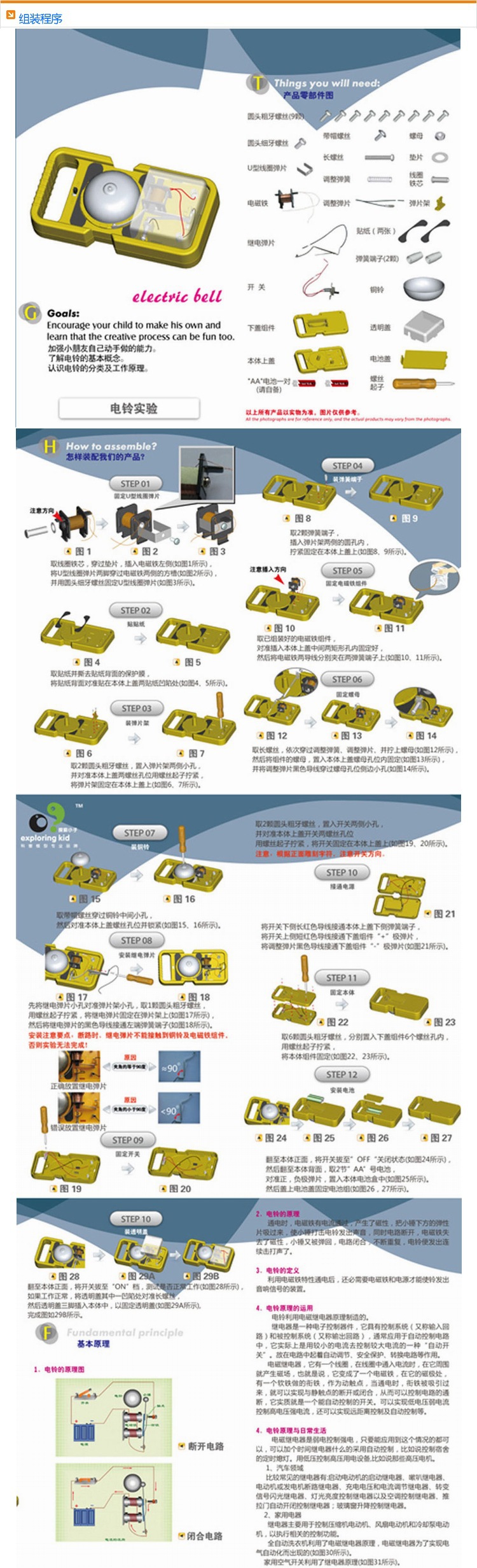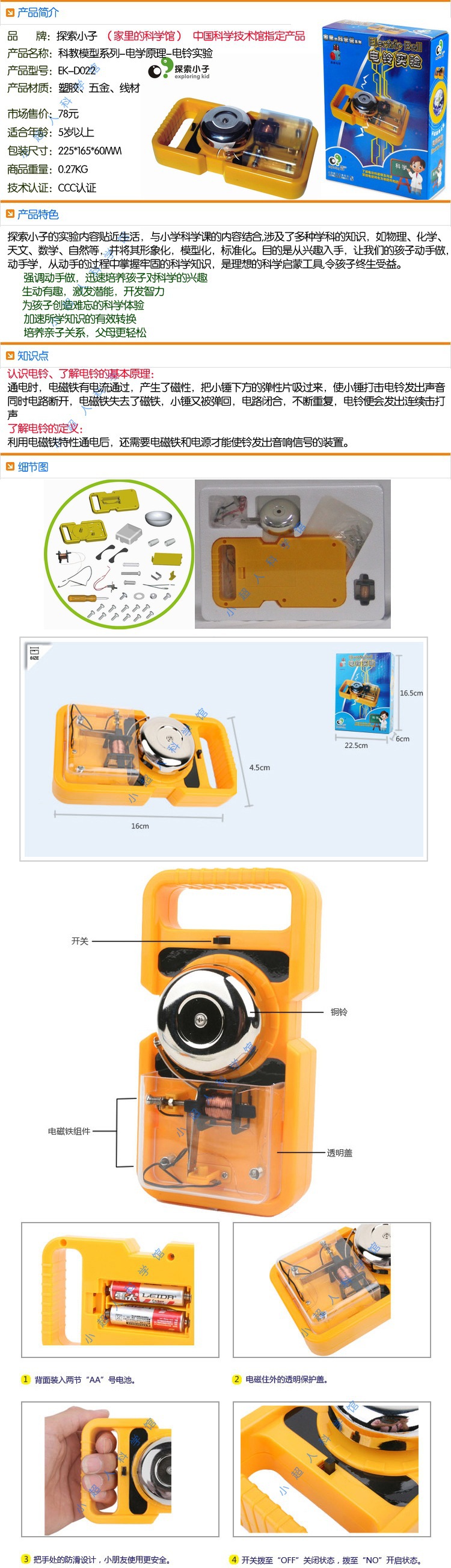 探索小子儿童科学实验玩具电学益智DIY玩具/电铃实验