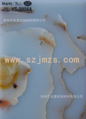 美溢人造透光玉石[特点]一、晶莹通透,搭配艳丽悦目多元化的色彩,将单调枯燥的平面巧妙地幻化得有立体感,各种花纹如行云流水,优美典雅、光洁清丽,美唤美伦,恒久不变,具有透明透光的质感。二、性能好:强度高、抗老化、吸水率低、无污染、无辐射、安装方便不易破碎,是绿色环保建材。