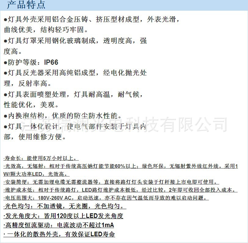 平均照度:0.4 | 工作温度:40° | 防护等级:IP66 |