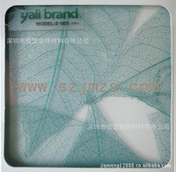 主要材料:采用共聚脂塑料PETG,在热融过程中加入轻纺、金属、纸、植物、树叶等独特材料制作而成;