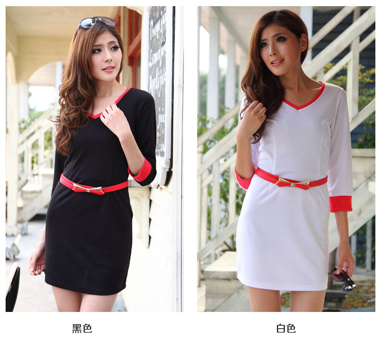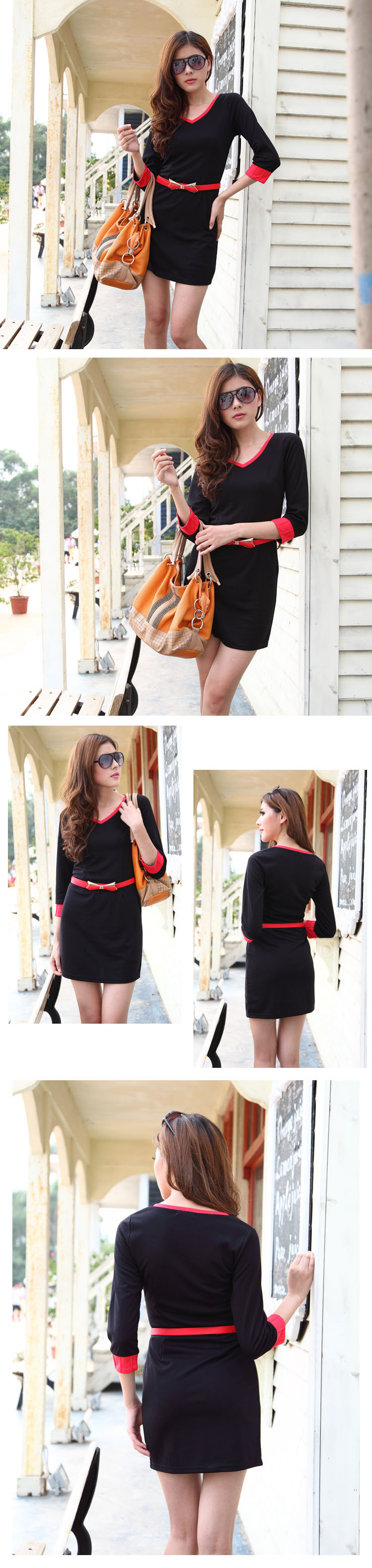 女式连衣裙 秋装新款韩版女式中长袖连衣裙 女式收腰连衣裙送腰带
