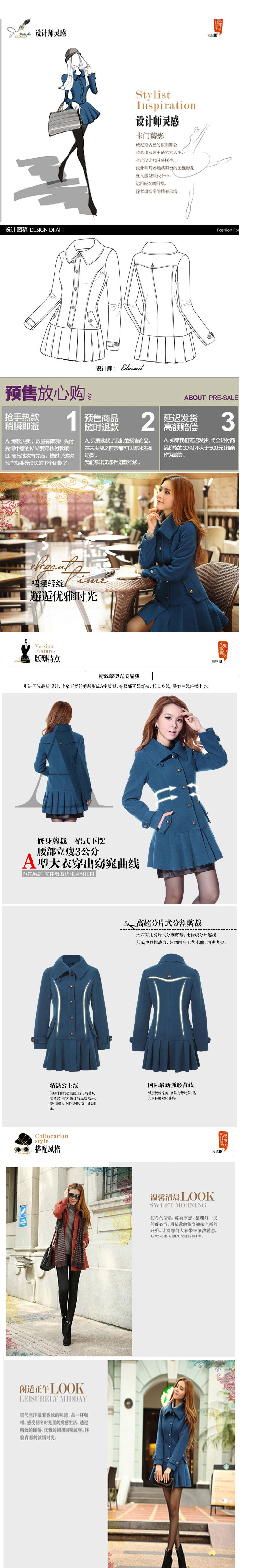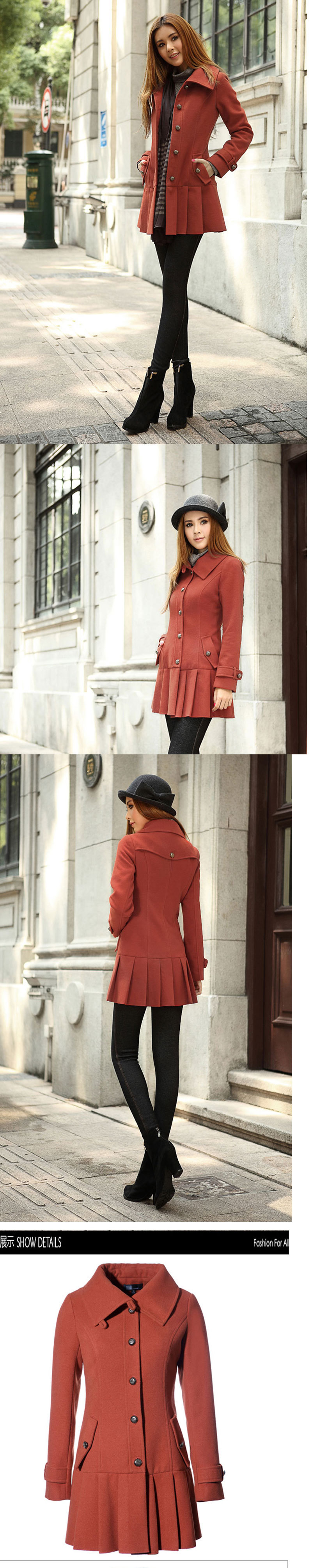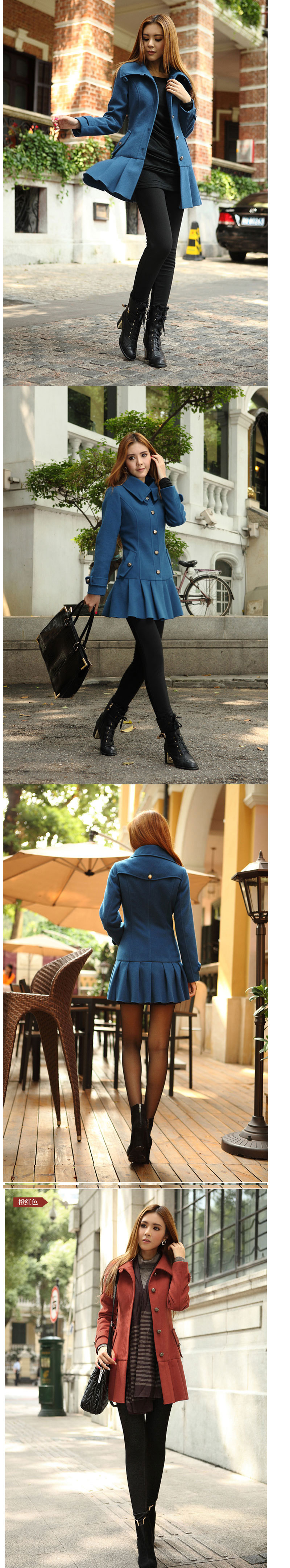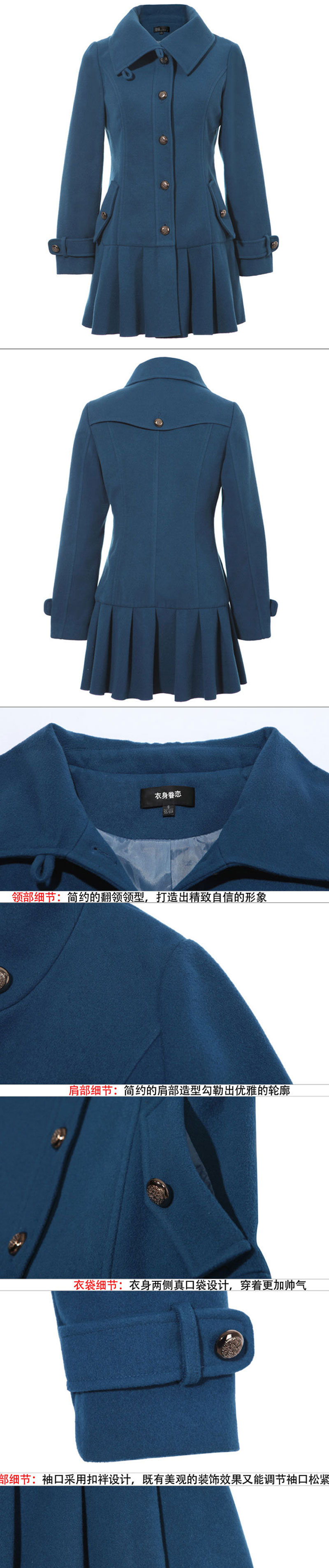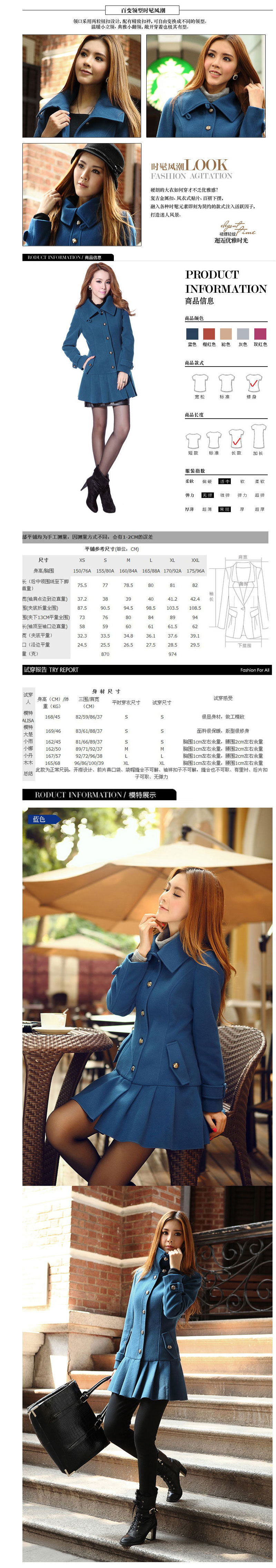 韩版大码女装修身 中长款毛呢外套 修身外套