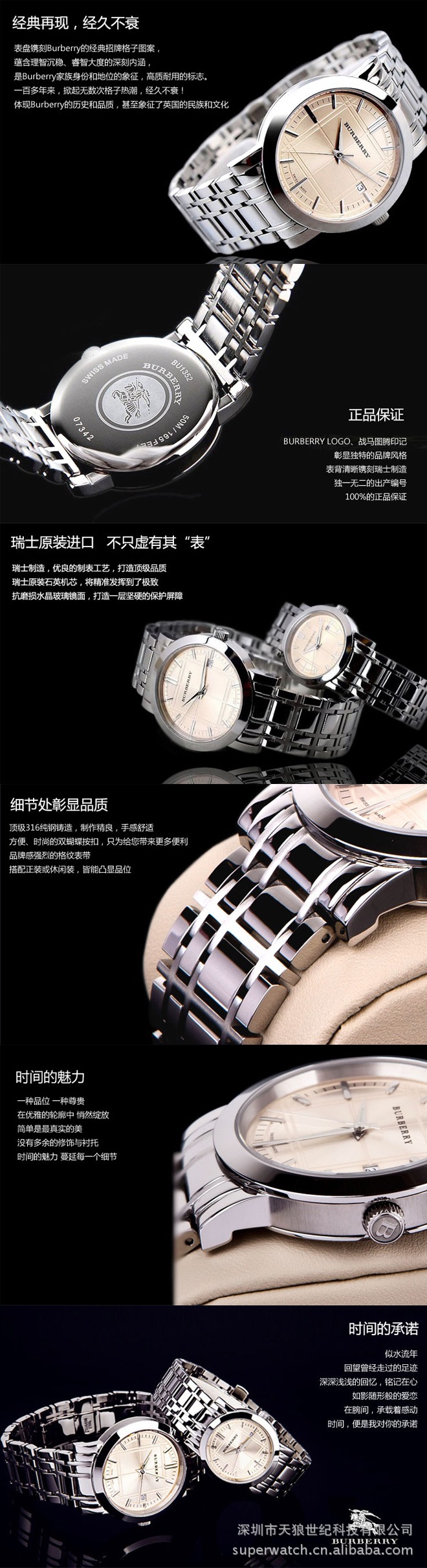 厂家批发原装Burberry巴宝莉手表情侣对表BU1352 /BU1353