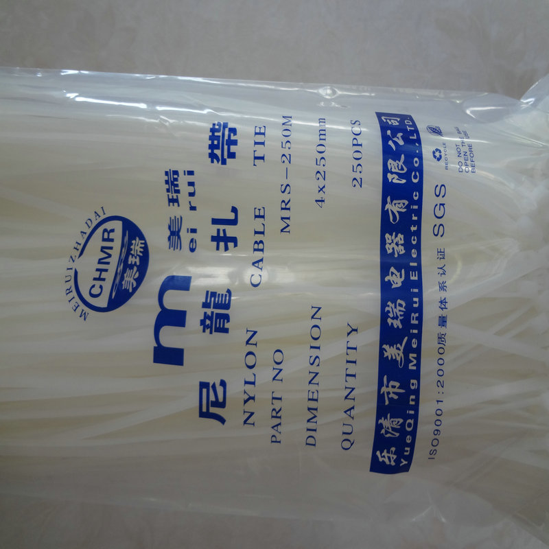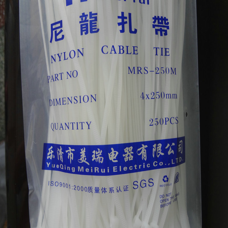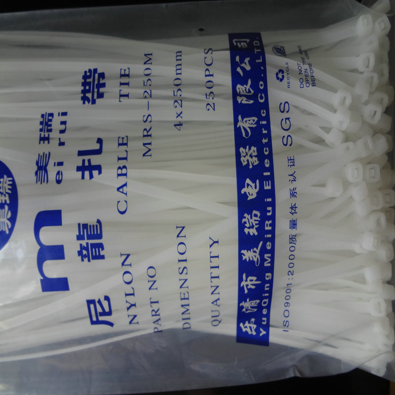 尼龙扎带故名思意就是用尼龙材料制作的捆扎东西的带子,设计有止退功能(活扣、珠孔除外)越拉越紧,也有可以拆卸的扎线带(活扣、珠孔)。材料:尼龙扎带采用UL(NYLON66)材料注塑制成,防火等级94V-2,具有耐酸、耐腐、绝缘不易老化、承受力极强。操作温度-20℃到+80℃(普通尼龙66)。随着材料的不断提尼龙11的产生将可以让尼龙扎带耐低温-40℃。使用范围:广泛应用电子厂、捆扎电视机、电脑内部连接线、灯饰、电缆等扎线,也