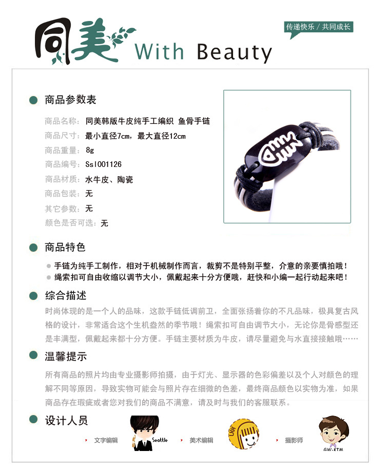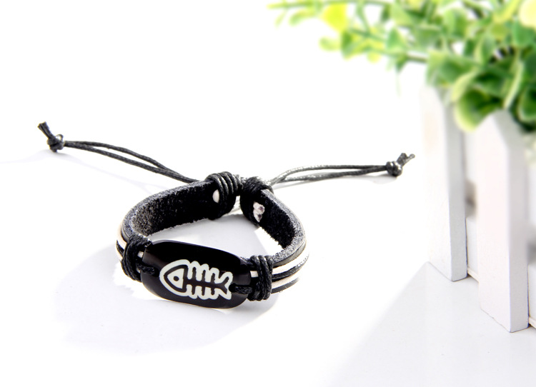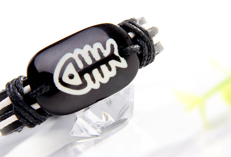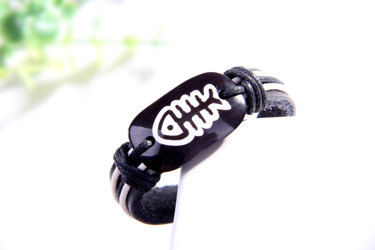 Ssl001126 同美韩版陶瓷系列 牛皮纯手工编织 鱼骨手链 定做