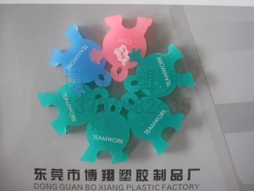 我司是专业设计生产:硅胶和塑胶工艺礼品、相框、卡通杯、杯垫、锁匙扣、行李牌、手机座、手机吊饰、手腕带、卡通笔记本、卡通手表带、卡通拼图、开瓶器、胶章、手袋胶章LOGO、制衣胶章LOGO、塑胶拉链头、鞋材LOGO。产品色彩鲜艳,质地软硬兼可、立体感强、耐磨擦、抗老化,具有环保、不褪色、不怕水、手感好等优点,是目前最时尚的饰品,也是单位促销赠送的好礼品,给人以新颖、高档、别致的感觉。