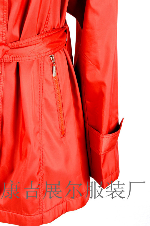 本厂生产加工精品女装,所有款均以订单形式出售,此款为外贸女风衣,做工精细,面料都是精选上等材质,常年出口欧洲,欢迎广大客户垂询下单,我们将以最优质的服务提供给您~