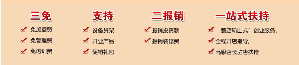 七、促销整体策划:公司策划开业宣传,每年推行全国性大型促销活动来提升品牌知名度,扩大市场占有率;公司提供大型促销活动所需展架,对举行活动的地区,公司将派各地优秀店长参与友情支持。促销活动的宣传品由公司免费设计制作。