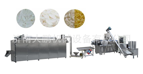 粮食是人类获取营养的主要来源之一,但是一般谷物的营养元素含量各不相同.由于谷物在加工过程中损失大量蛋白质和微量元素,使营养成分大大降低,人造大米(仿真食品)技术是挤压原理在粮食再生利用方面的突破.该技术最大特点是将人体所必需的各种营养素添加到食品中,生产出各种保健食品,疗效食品和功能食品.产品食用方便,易于消化吸收,深受消费者欢迎.
