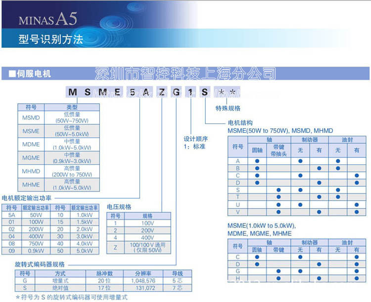 惯量 | 功率 | 通用型 | 脉冲专用型 | 制动标志 |