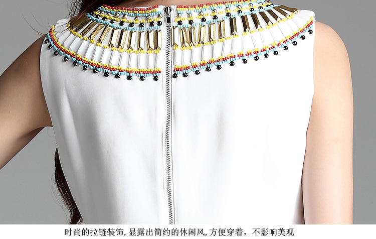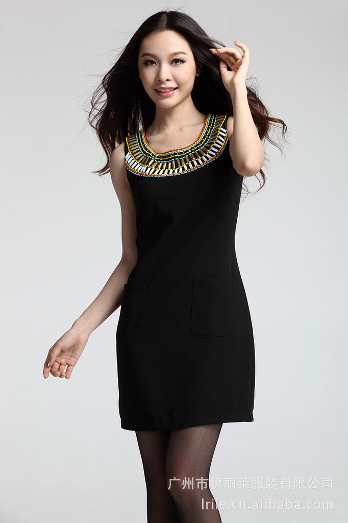2012秋季新款 韩版彩珠镶嵌圆领无袖连衣裙