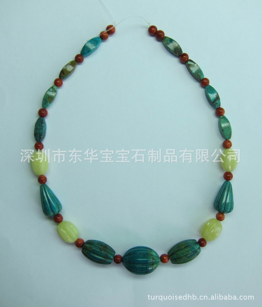 [厂家直销]供应 天然绿松石 各型绿松石间珊瑚、阿富汗玉项链