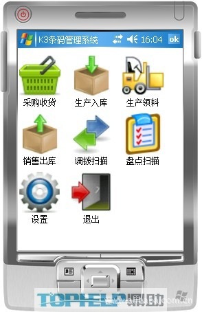 鼎助K3条码管理系统(K3Barcode),系统简称“鼎助KB”。鼎助公司以多年条码应用经验,携手金蝶,为K3企业用户提供的增值服务,对企业的“进、销、存”(采购、销售、仓存)的进行条码管理。本系统基于鼎助SIA平台基础上开发,与金蝶K3-ERP系统高密度集成。鼎助KB系统标准包有两个应用端:“Web系统端”和“PDA无线采集端”(支持Windows Mobile和Windows CE系统),其中Web系统端包含了WebUI和Web服务(给PDA系统数据服务)。
