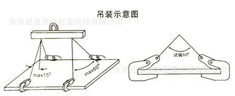 注意:以二只实验为额定载荷,吊装作业中二只或四只组成使用;吊运过程中不得碰撞被吊物;严禁超载使用!