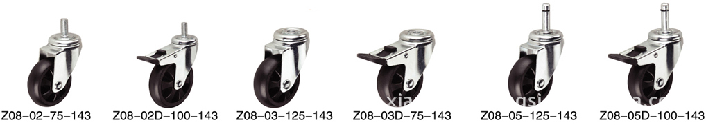 范围:适合在比较平滑的表面和地毯上使用,广泛运用于轻型设备配套、工具箱及手推车行业和比较潮湿的环境中,使用温度为-20~80℃轮子表面邵氏硬度为65D.载重:单轮1寸-5寸载重量为15KG-90KG.