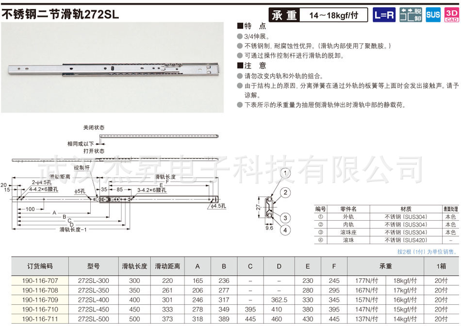 世嘉智尼sugatsune蓝普lamp不锈钢线型多用途滑轨272SL
