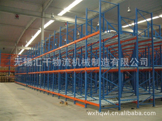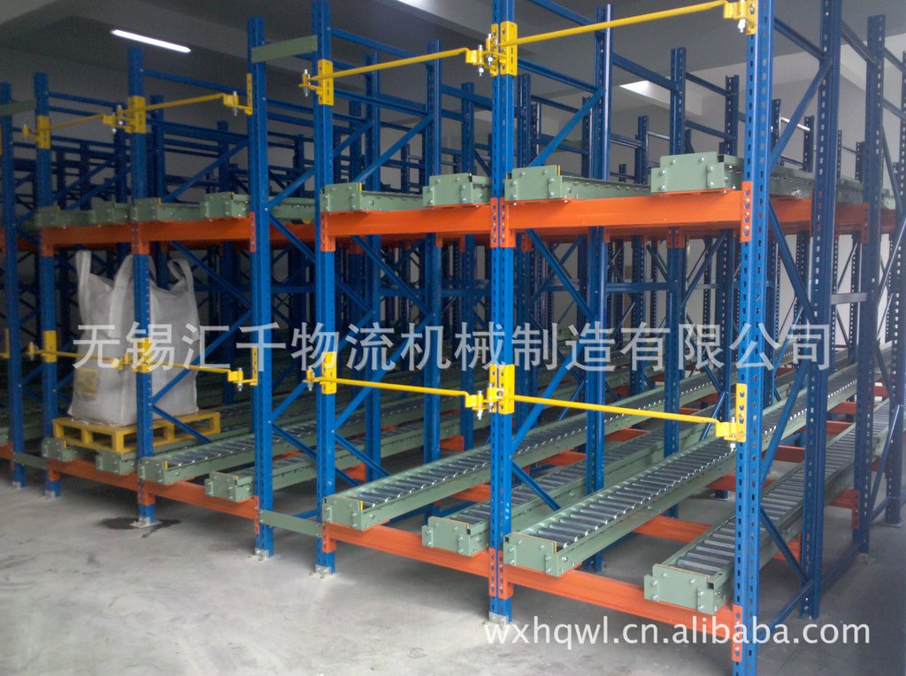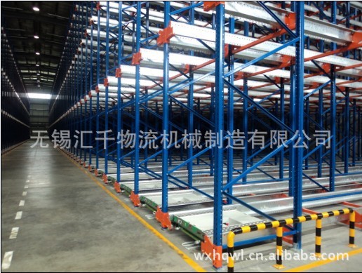 特点 重力式货架是横梁式货架衍生品之一,货架结构与横梁式货架相似,只是在横梁上安上滚筒式轨道,轨道呈一定角度倾斜。托盘货物用叉车搬运至货架进货口,利用自重,托盘从进口自动滑行至另一端的取货口。是先进先出的存储方式。货架深度及层数可按需要而定。重力式货架适用于少品种大批量同类货物的存储,空间利用率极高。 工作原理 重力式货架又叫辊道式货架,属于仓储货架中的托盘类存储货架。重力式货架是横梁式货架衍生品之一,货架结构与横梁式货架相似,只是在横梁上安上滚筒式轨道,轨道呈3-5°倾斜。托盘货物用叉车搬运至货架进货口,利用自重,托盘从进口自动滑行至另一端的取货口。重力式货架属于先进先出的存储方式。 货架特点 1、货物由高的一端存入,滑至低端,从低端取出。货物滑动过程中,滑道上设置有阻尼器,控制货物滑行速度保持在安全范围内。滑道出货一端设置有分离器,搬运机械可顺利取出第一板位置的货物。 2、货物遵循先进先出顺序。货架具有存储密度高,且具有柔性配合功能。 3、适用于以托盘为载体的存储作业,货物堆栈整齐,为大件重物的存储提供了较好的解决方案,仓储空间利用率在75%以上,而且只需要一个进出货通道; 适用范围 主要用于对货物时差要求较高的(如保证生产线的物料不间断供给)等场合使用。 4、重力式货架非常环保,全部采用无动力形式,无能耗,噪音低,安全可靠,可满负荷运作。 货架结构 重力式货架由托盘式货架演变而成,采用滚筒式轨道或底轮式托盘。 注意事项 货架总深度(即导轨长度)不宜过大,否则不可利用的上下“死角”会较大,影响空间利用,且坡道过长,下滑的可控性会较差,下滑的冲力较大,易引起下滑不畅、阻住,托盘货物的倾翻。为使下滑流畅,如坡道较长,应在中间加设阻尼装置,为使托盘货物下滑至最底端时不致因冲击力过大而倾翻,应在坡道最低处设缓冲装置和取货分隔装置,因此设计、制造、安装难度较大,成本较高。此类货架不宜过高,一般在6米以内,单托货物重量一般在1000KG以内,否则其可靠性和可操作性会降低。 |